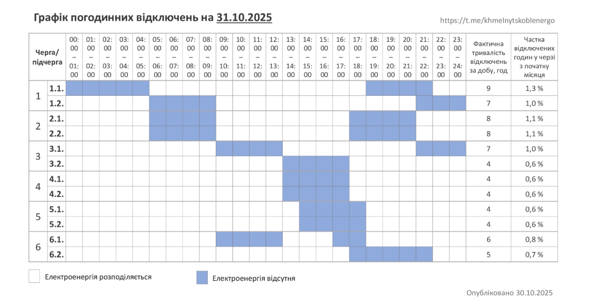 - Графік може змінюватися залежно від ситуації в енергосистемі